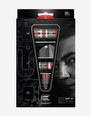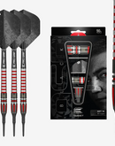 The 90% tungsten barrel features CNC milled grooves and cuts throughout which is then overlaid with a black PVD performance coating. The barrel contrast is created by re-machined silver rings and vibrant red colour. The dart is finished with black pixel tips, black Pro Grip shafts, and signature Aspinall black flights.